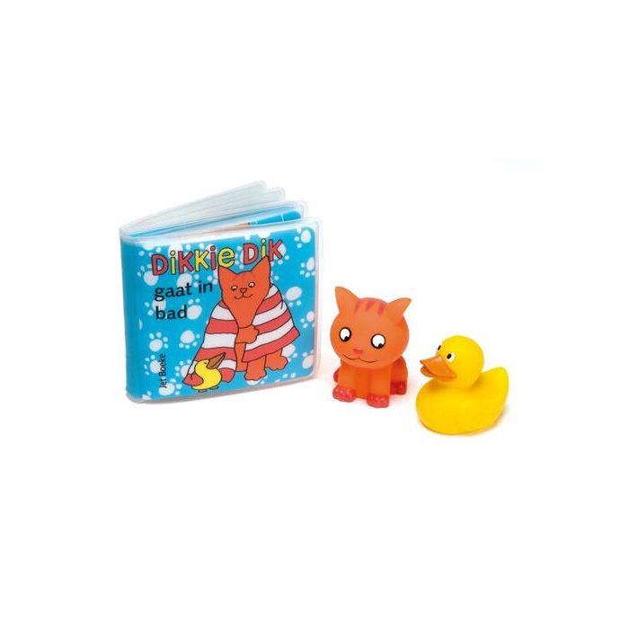 Het populaire badboekje 'Dikkie Dik gaat in bad', met een grappige tekst op rijm, zit nu in een mooi stevig netje met twee waterspuitertjes - eentje van Dikkie Dik en eentje van zijn eendje. Daarmee is dit badboekje gegarandeerd een succes, want zeg nou zelf: wie wordt er nou niet vrolijk van een watergevecht met de beroemde oranje kater? Geschikt voor kinderen vanaf 6 maanden.