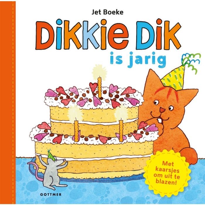 'Dikkie Dik is jarig' is een heel bijzonder en stevig prentenboek met een verjaardagstaart met drie kaarsjes om echt uit te blazen. En Dikkie Dik wil dan ook niets liever dan die kaarsjes uitblazen en de taart oppeuzelen, maar er moet nog een hoop gebeuren voor het poezenfeestje kan beginnen: de slingers moeten worden opgehangen, alle poezenvrienden moeten nog arriveren... Zou Dikkie Dik zo lang kunnen wachten?
