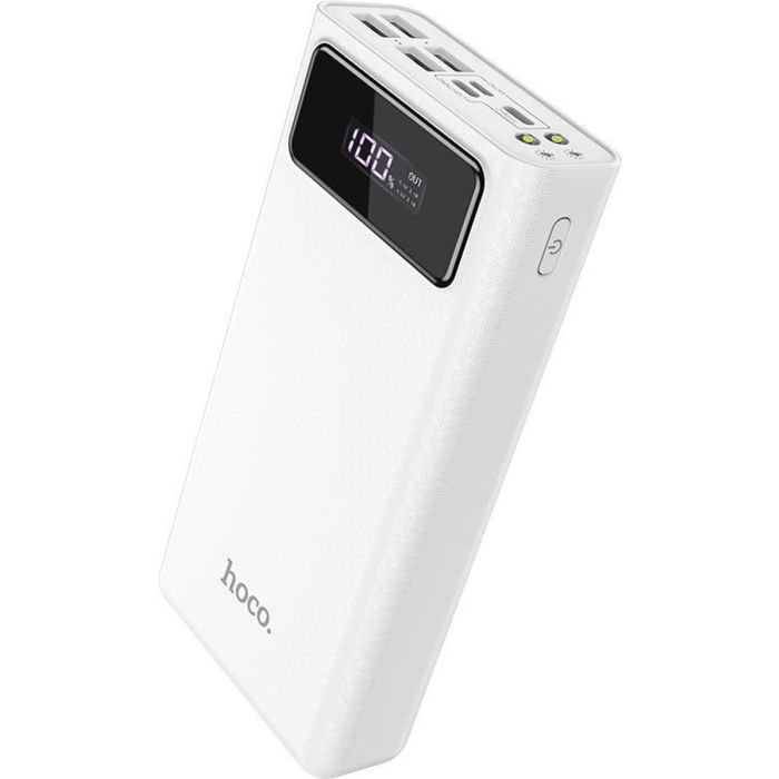 Hoco Powerbank 30.000 mAh - Ultra Capaciteit - Fast Charge Snellader - 4x USB-A Output - Met Zaklamp & LED Display - Wit