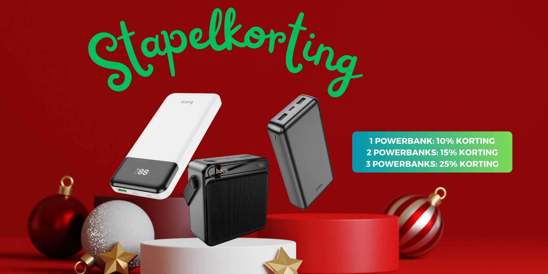10% korting bij 1 powerbank • 15% korting bij 2 powerbanks • 25% korting bij 3 powerbanks