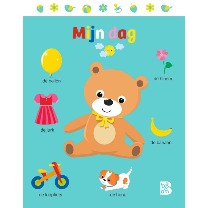 De knuffelbeer, de zon, het huis… Dit kleurrijke kijkboek is ideaal om de allerkleinsten vanaf 1 jaar kennis te laten maken met de dieren en de voorwerpen uit hun omgeving.