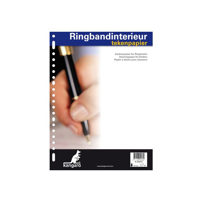 Het ringbandinterieur van Kangaro bevat 50 vel tekenpapier van 120 gram. Geschikt voor tekenaars en kunstenaars die behoefte hebben aan stevig papier voor hun creatieve werk. Het interieur past in een ringband en biedt ruimte voor veel tekeningen.
